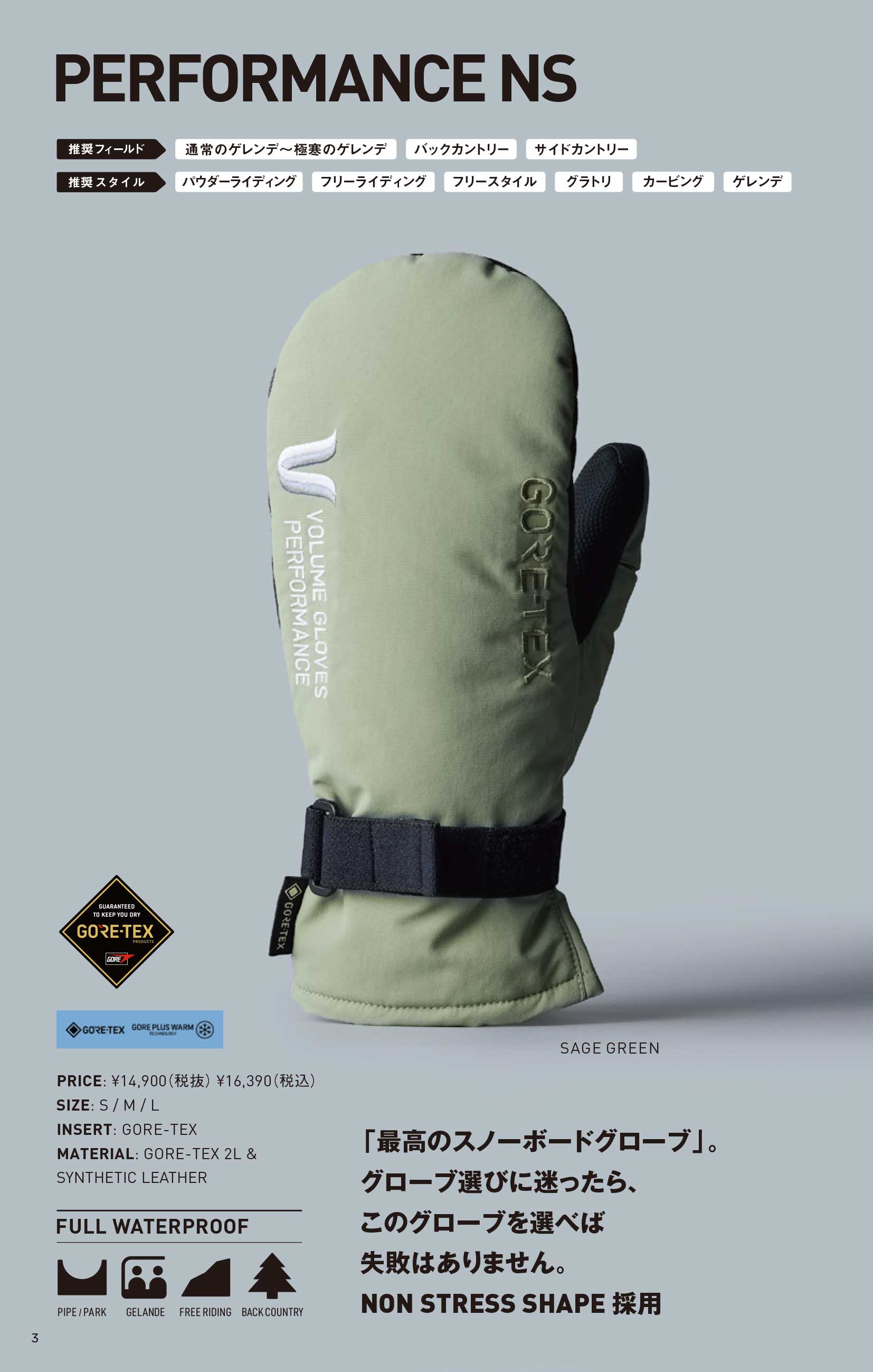 【予約商品】26-27 VOLUME GLOVES | PERFORMANCE NS | Color : SAGE GREEN